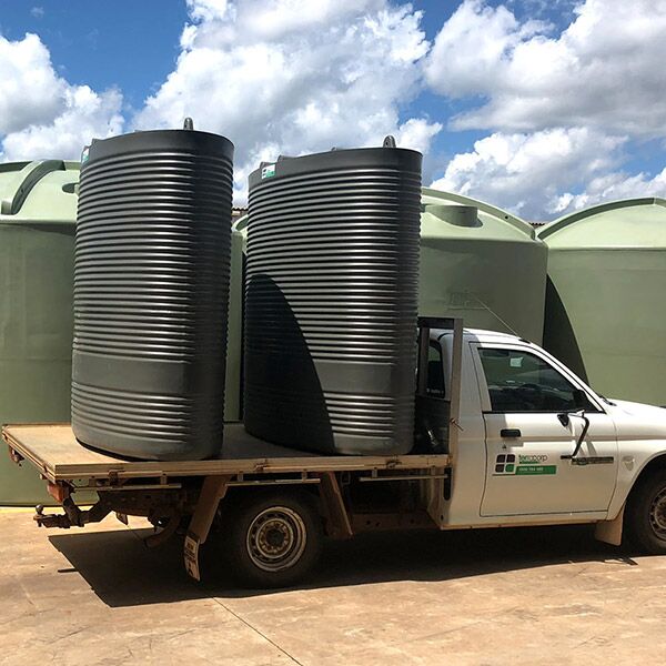 4 : Two Slate Grey Slimline Tanks on trayback ute ready for delivery